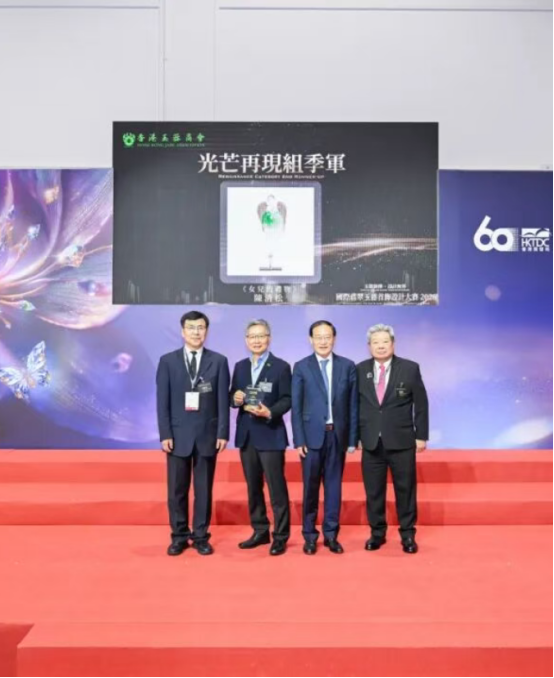 「光芒再现组」由中国珠宝玉石首饰行业协会副会長兼秘书长毕立君先生担任颁奖嘉宾并发表致辞。他在发言中指出,玉石翡翠承载东方古韵与华夏文脉,本届大赛面向全球,不仅是设计巧思与技艺水准的集中展示,更是一场跨越地域与文化的深度交流,设计师以当代视野重塑传统,使翡翠在新时代焕发璀璨光芒。这份光芒既是文化自信的体现,也是创新活力的象征,更代表着产业未来的发展方向。「光芒再现组」突破常规赛事框架,为既有作品提供再次审视与再度认同的平台,通过对经典设计进行系统优化与结构重构,使其在新的专业标准下获得更高维度的评价与认可。